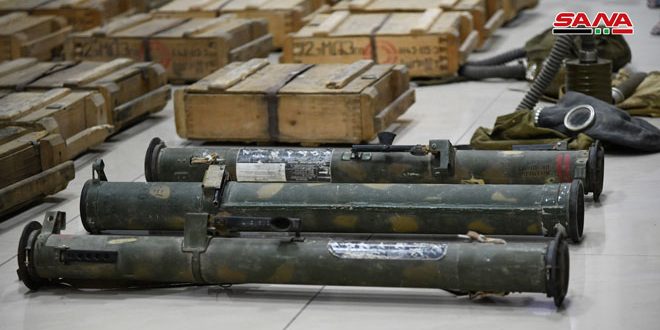 Dans un point de presse, le directeur de la lutte contre la contrebande à la direction des douanes, Ghyath Hamdan, a fait savoir que sur la base des informations données à la direction générale des douanes, les éléments de la direction de la lutte contre la contrebande avaient saisi un dépôt d’armes et de munitions abandonnées par les groupes terroristes dans une colline dans la banlieue de Damas.