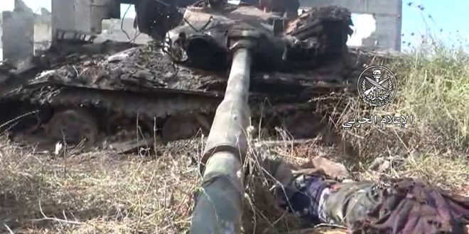 Le correspondant de Sana à Hama a indiqué que la destruction , le nombre de tué parmi les terroristes et les véhicules brûlés par le feu de l’armée arabe syrienne démontrent la férocité de la bataille qui a été menée par l’armée contre les réseaux terroristes.