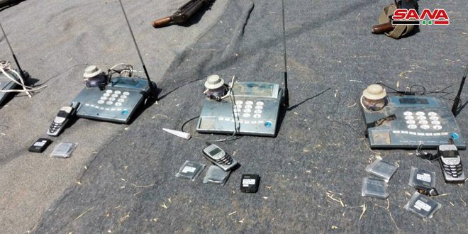 Le correspondant de SANA à Quneitra a indiqué que les services compétents avaient découvert, alors qu’ils ratissaient les zones purifiées du terrorisme, des armes moyennes et légères, dont certaines sont de fabrication américaine, des médicaments et des appareils de télécoms spatiaux.