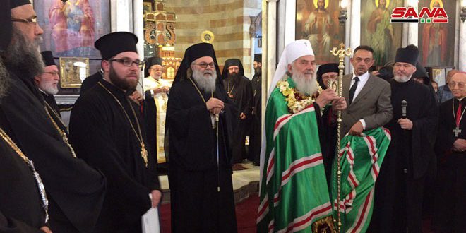 Damas -SANA / Une prière a été effectuée aujourd’hui dans l’église Mariamite à Damas, avec la participation du patriarche de Serbie, Irénée, du patriarche d’Antioche et de Tout l’Orient pour les Grecs orthodoxes, Jean X Yaziji, du patriarche d’Antioche et de Tout l’Orient, chef suprême de l’Eglise syriaque orthodoxe dans le monde, Mgr Mar Agnatios Afram II, du patriarche d’Antioche et de Tout l’Orient pour les grecs melkites catholiques, Mgr Youssef Abssi et des chefs des communautés chrétiennes en Syrie.