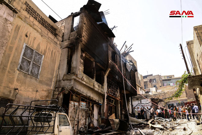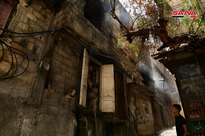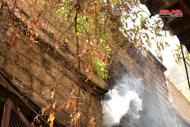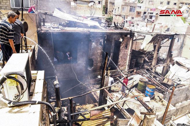 Incendie provoqué dans une maison à Ruken Eddine à Damas