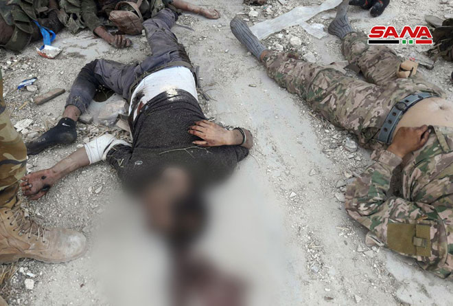 Hama -SANA/ Suite aux accrochages avec les terroristes du « Front Nosra » qui avaient attaqué l’axe de Tell Meleh/ Jalma dans la banlieue nord-ouest de Hama, de nombreux terroristes ont été tués alors que leurs véhicules ont été détruits dans la périphérie du village de Jalma.