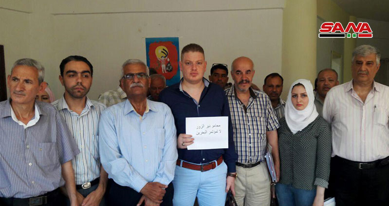 Dans une déclaration aux journalistes, le Secrétaire de l’Ordre des Avocats en Syrie, Samir Batrni, a souligné que la tenue de l’atelier de Bahreïn est un prélude au “Deal du siècle”, qui fait fin aux droits du peuple palestinien prévus dans les droits internationaux et aux principes de la justice humaine, affirmant que la Syrie est ferme dans sa position contre l’agression et les plans sionistes et dans sa solidarité avec le peuple palestinien dans sa lutte contre l’occupation.