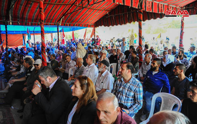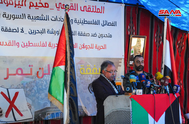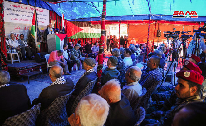 Damas – SANA/ Les participants au Forum national de Damas au camp de Yarmouk à Damas, ont affirmé leur soutien ferme face à tous les plans et les complots visant à porter atteinte aux droits du peuple arabe palestinien et aux droits de la Nation arabe, en particulier face aux soi-disant ‘’Deal de siècle’’ et ‘’atelier économique de Bahreïn’’.