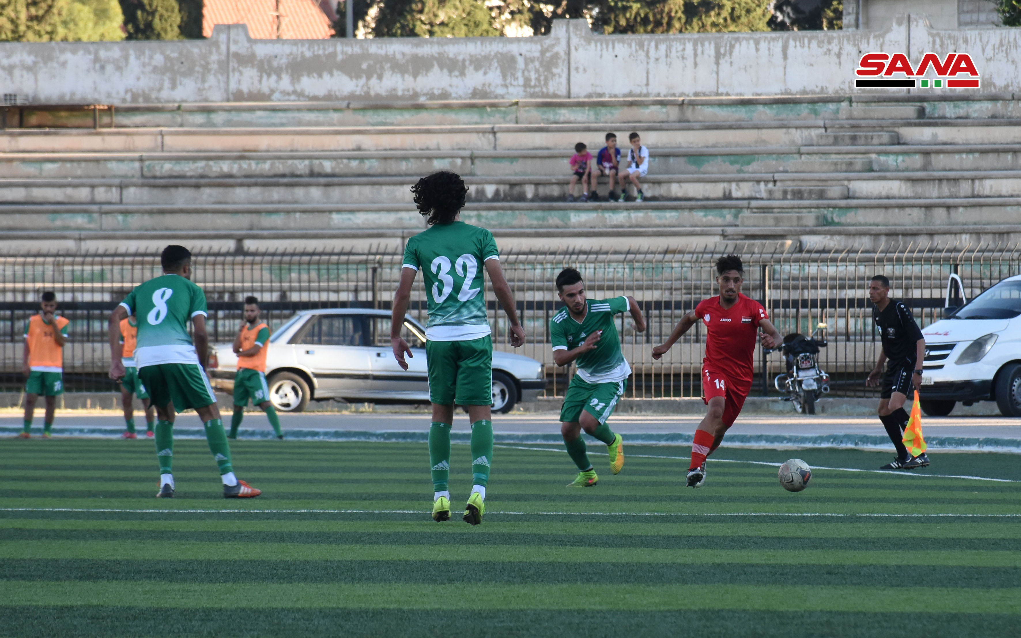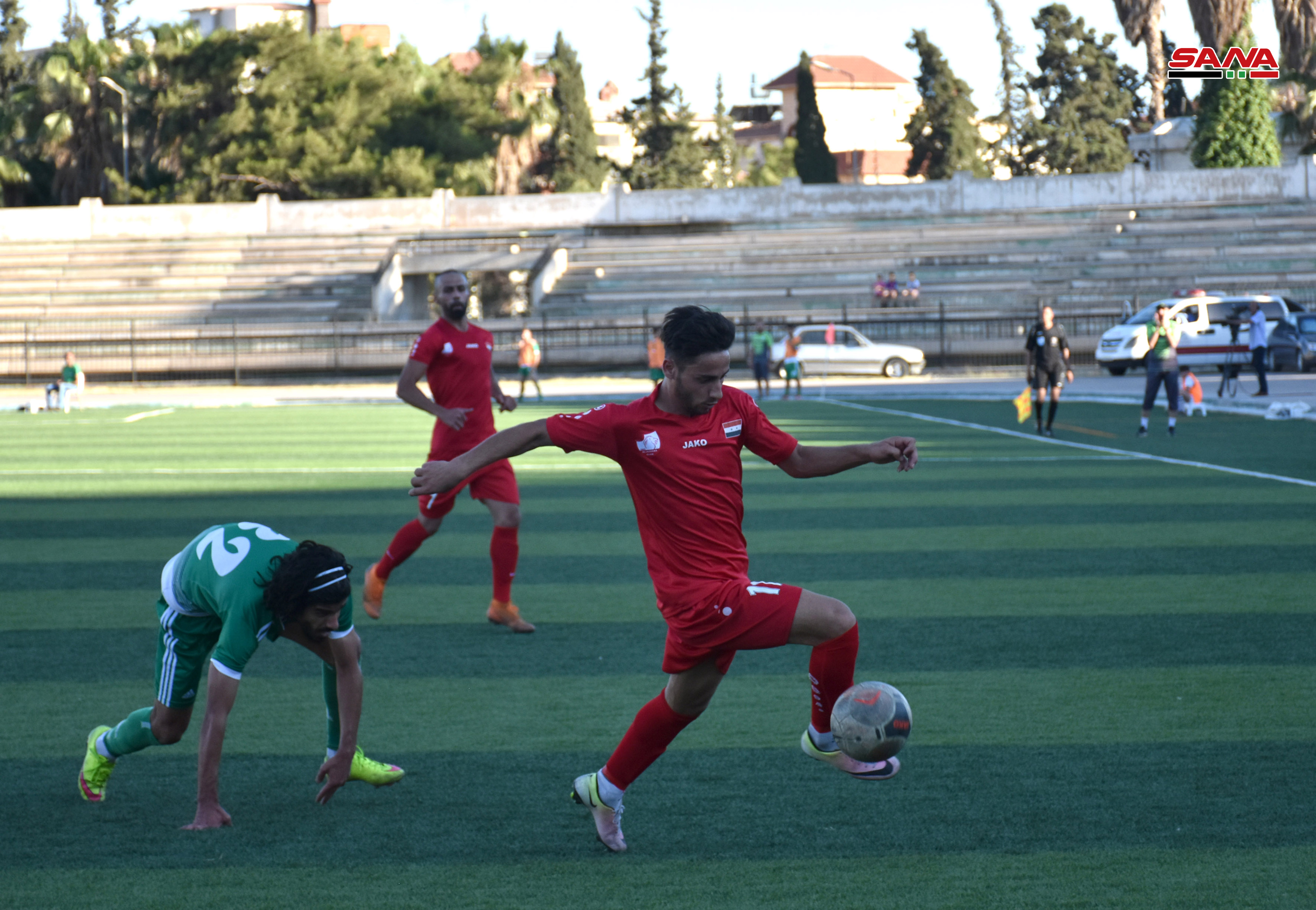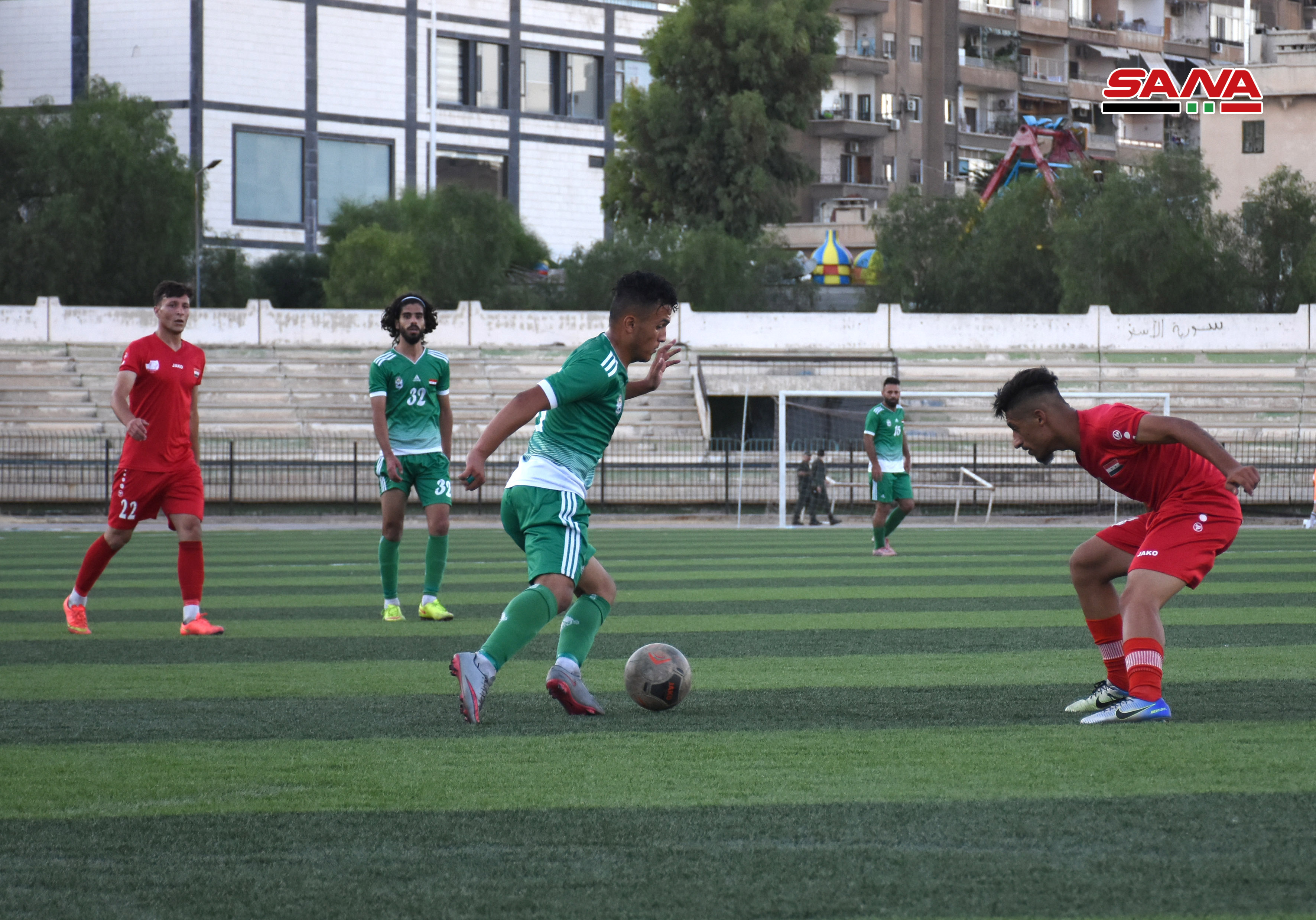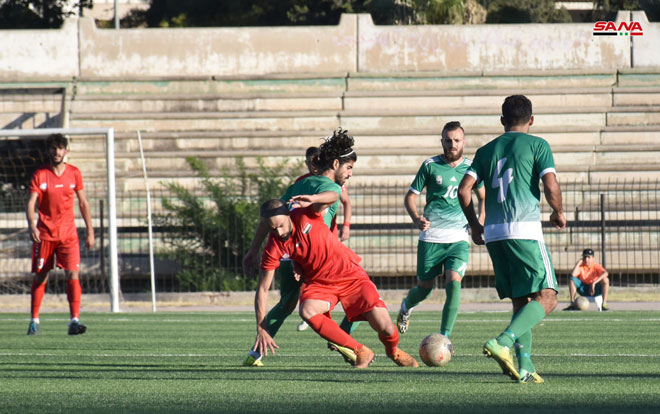 Le match opposant les deux équipes d’al-Jazira et al-Hurriya au stade de Jalaa à Damas
