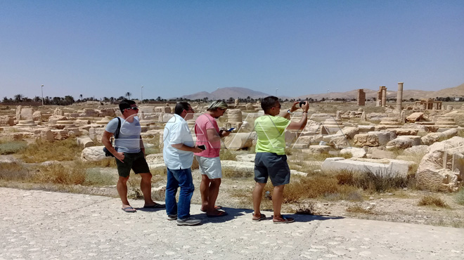 Palmyre-SANA/ Plusieurs touristes russes ont visité la ville archéologique, Palmyre, et ses sites archéologiques et y ont pris connaissance des dommages que ses monuments historiques avaient subis du fait des attaques menées par les terroristes de “Daech”.