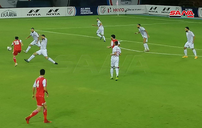 Le match de la sélection syrienne “séniors” de football avec son adversaire tadjik au tournoi international de l’Inde