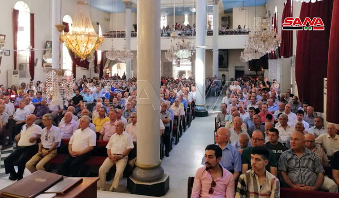 Les participants à la messe ont affirmé leur attachement à la Patrie malgré les tentatives du terrorisme de porter atteinte à leur fermeté, faisant savoir que l’attentat terroriste, qui avait visé l’église il y a trois jours, a pour objectif de semer la peur dans les cœurs des Syriens.