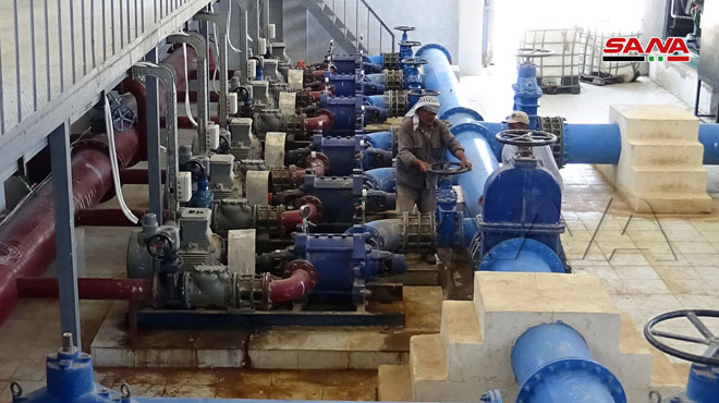 Alep-SANA / La centrale électrique de la zone de Maskana dans la banlieue d’Alep, laquelle est consacrée à l’alimentation des stations de pompage d’eaux aux villages avoisinants et à la fourniture de l’électricité à plusieurs projets, a été remise en fonction après une rupture pendant des années à cause du terrorisme.