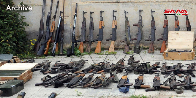 Daraa – SANA/ Les services compétents ont découvert aujourd’hui à Daraa des quantités d’armes légères et moyennes, abandonnées par les terroristes entre les deux localités de Kherbet Ghazaleh et Gharyah Charqyah dans la banlieue nord de Daraa.