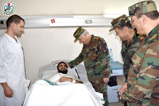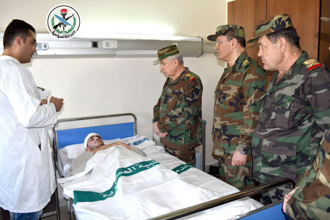 Damas-SANA / Sur directives du président Bachar al-Assad, commandant en chef de l’armée et des forces armées, et à l’occasion du 74e anniversaire de la fondation de l’armée arabe syrienne, le général Ali Abdullah Ayoub, commandant en chef adjoint de l’armée, ministre de la Défense, s’est rendu aux chevets des blessés dans l’hôpital militaire de Tichrine et leur a félicité à l’occasion de la fête de l’armée.
