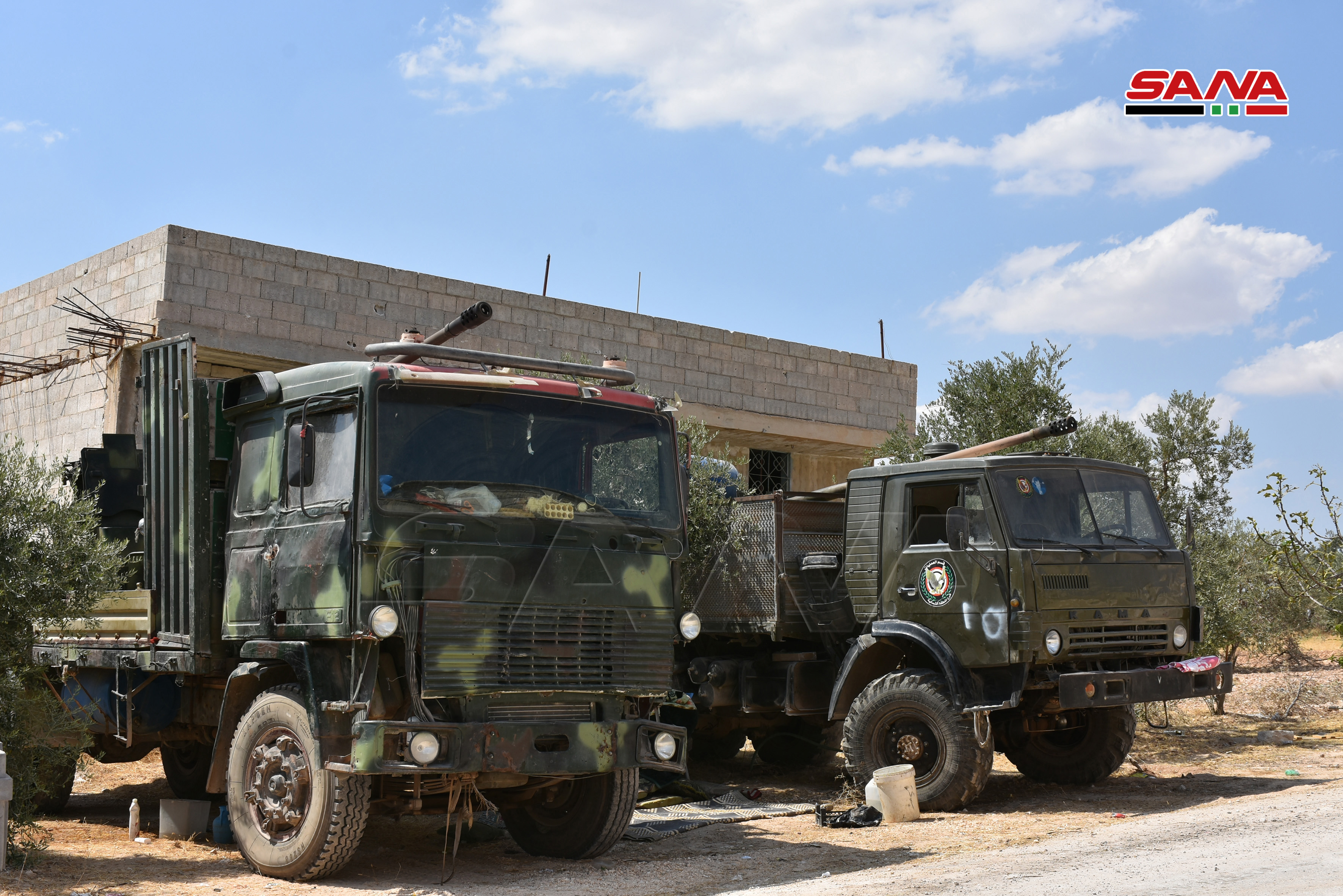 Idleb-SANA / Le cameraman de SANA a accompagné les héros de l’armée arabe syrienne dans les deux localités de Tamanaa et Khweine dans la banlieue sud d’Idleb après l’expulsion des terroristes de ces zones et d’un certain nombre de localités et de collines stratégiques dans la région.