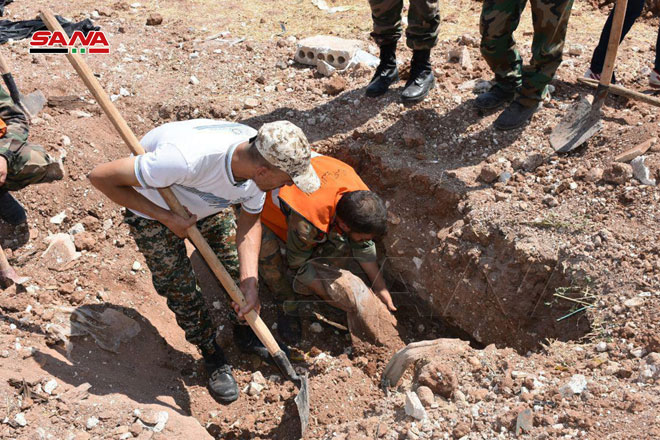 La source a précisé que les dépouilles récupérées appartiennent à des martyrs de l’armée arabe syrienne qui étaient tombés dans les combats contre les réseaux terroristes en 2015 et qui avaient été enterrés par leurs collègues à cause de l’impossibilité de leur transport.