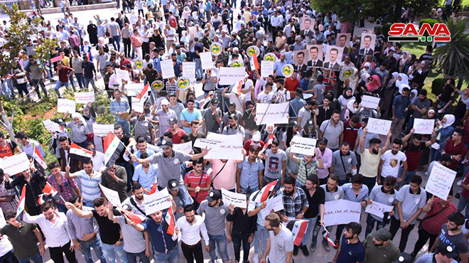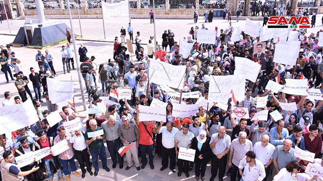 Sit-in de protestation à Alep en rejet de l’agression américaine et turque contre les territoires syriens