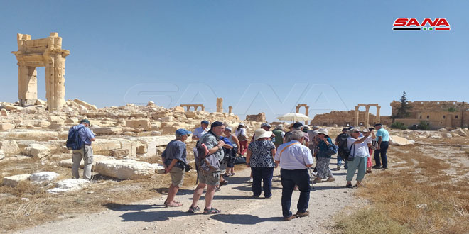 Un groupe touristique français visite la ville archéologique de Palmyre