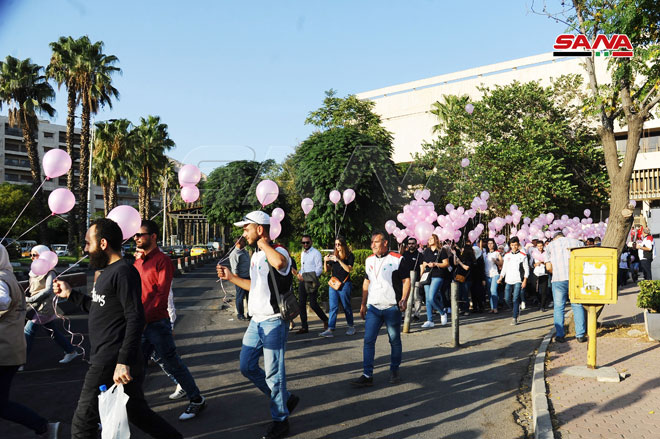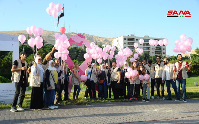 Damas-SANA / 1000 volontaires environ des associations et des initiatives civiles ont pris part au lancement de la campagne nationale du dépistage de cancer du sein, organisée par la commission nationale du contrôle du cancer durant le mois d’octobre en cours.