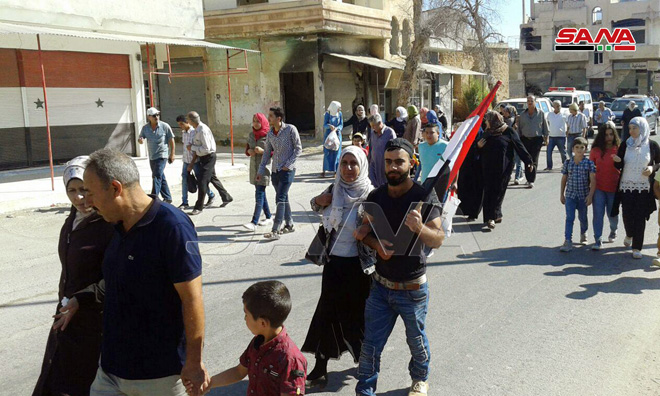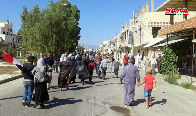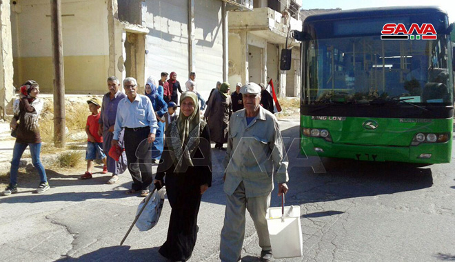 Homs-SANA/ Dans le cadre des efforts déployés par l’Etat pour faire retourner tous les Syriens déplacés à leurs villes et villages libérés du terrorisme, une quatrième partie de familles déplacées du fait du terrorisme sont revenues à la localité de Qusseir dans la banlieue de Homs.