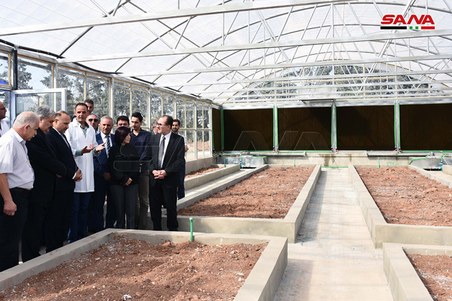 Hama -SANA / À l’occasion du 46e anniversaire de la guerre de libération d’octobre, l’usine Bio-Pesticides « Trichoderma» a été mise en service à Hama, et la première pierre du laboratoire de la lutte contre la fleur du Nil, qui se trouve dans le lit de l’Oronte, a été également mise.