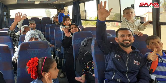 Le correspondant de SANA dans le poste frontalier de Nassib a fait savoir que les parties concernées avaient accueilli les déplacés pour les transporter par autobus à leurs zones et villes libérées du terrorisme par l’armée arabe syrienne.