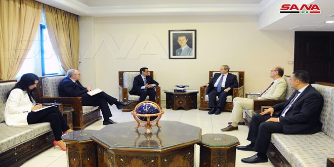 Damas 17-10-SANA / Fayçal Miqdad, vice-ministre des AE et des Expatriés, a reçu aujourd’hui, Abdessalam Ould Ahmed Saleh, représentant résident du bureau régional de la FAO, vice-directeur général du bureau du président de la FAO à Rome.