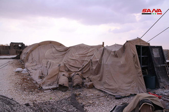 Le correspondant de SANA est entré aujourd’hui dans une base militaire américaine dans la région de Sa’ydia au sud-ouest de la ville de Manbej dans la banlieue nord-est d’Alep, après que les forces américaines s’en soient retirées il y a quelques jours et ont authentifié par photos ce que l’occupant avait laissé des équipements, des armes et des munitions avant son retrait.