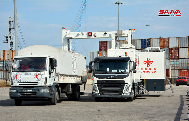 Réception de la 4e partie des aides humanitaires et des dons octroyés par la Chine à la Syrie