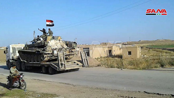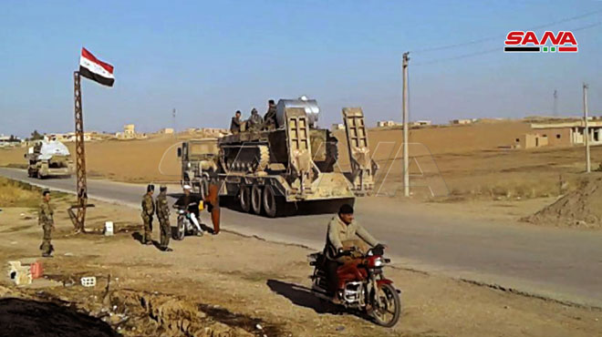Hassaké-SANA / L’armée arabe syrienne a envoyé aujourd’hui de nouveaux renforts à ses unités qui se déploient dans les villages et les localités frontaliers dans la banlieue nord-est de Hassaké pour défendre la région contre les forces d’occupation turques et leurs mercenaires des terroristes.