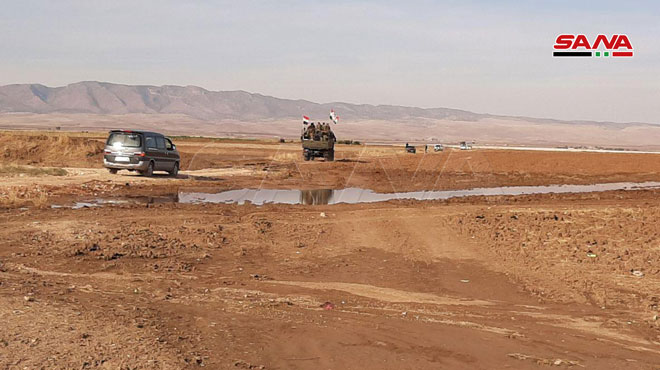 Hassaké-SANA / Des unités de l’armée arabe syrienne se sont déployées dans les zones frontalières dans la banlieue est de la ville de Qamichli, dans le cadre de leurs missions nationales de rétablir la sécurité et la stabilité dans la zone et protéger les habitants contre toute agression.