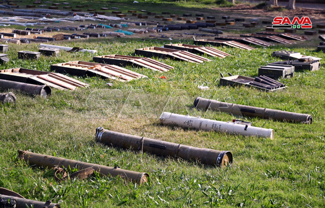 Gouvernorats-SANA/ Dans le cadre de leurs missions d’achever le ratissage des zones libérées par l’armée arabe syrienne du terrorisme, les services compétents ont découvert des armes et des munitions, dont des missiles “TOW” de fabrication américaine et des agents toxiques abandonnés par les terroristes dans les banlieues de Damas, Daraa et Hama.