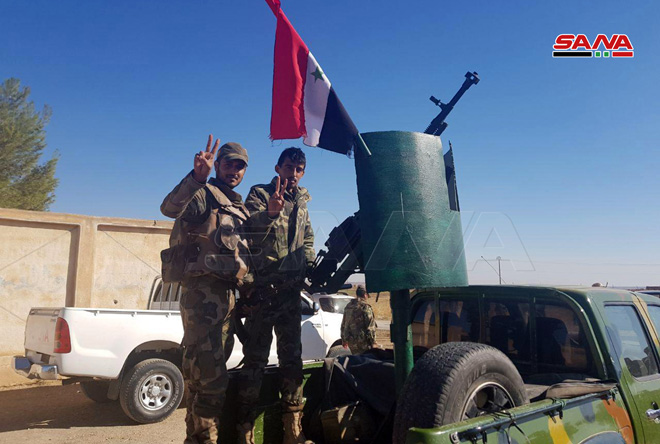 Le correspondant de SANA à Hassaké a indiqué que de nouveaux renforts de l’armée arabe syrienne avaient accédé aux villages de Bab Kheir à Abou Rasseine et d’Om Cha’ifa, Fayçalya, Manakh et Mahmoudya sur l’axe de Tell Tamer-Ras Ain pour consolider les positions de l’armée arabe syrienne en vue de défendre les citoyens et le territoire de la patrie contre n’importe quelle attaque.