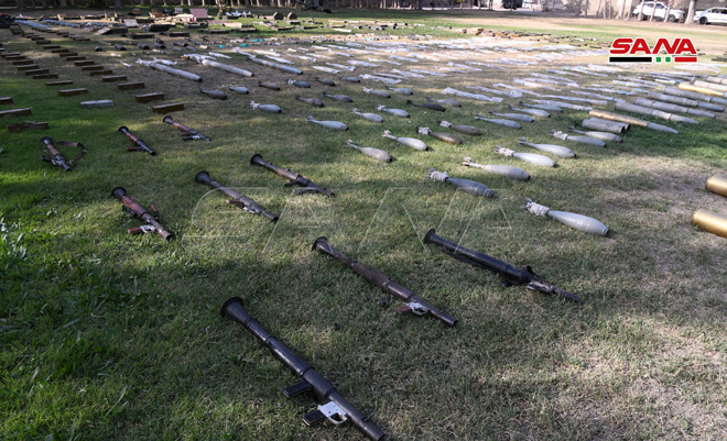 Découverte de missiles “TOW” de fabrication américaine abandonnés par les terroristes dans les banlieues de Damas, Daraa et Hama