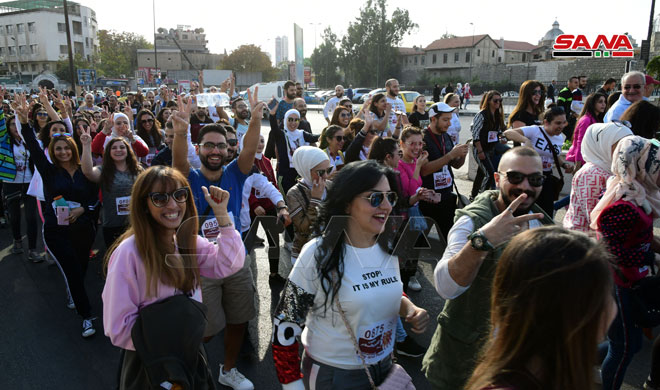 Damas-SANA / Plus de 1400 jeunes hommes et jeunes femmes de différents gouvernorats syriens ont pris part aujourd’hui au marathon de la « Paix pour la Syrie », dans le cadre des célébrations du département des relations œcuméniques et de développement à l’occasion de 25 ans passés après la création du département.