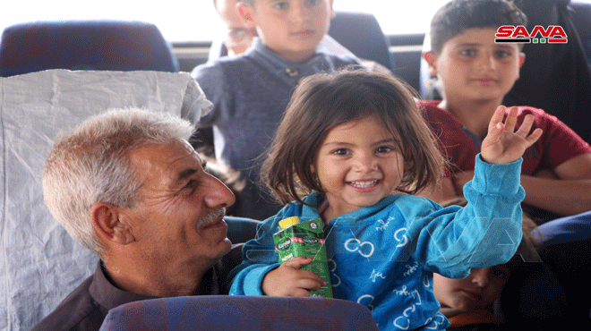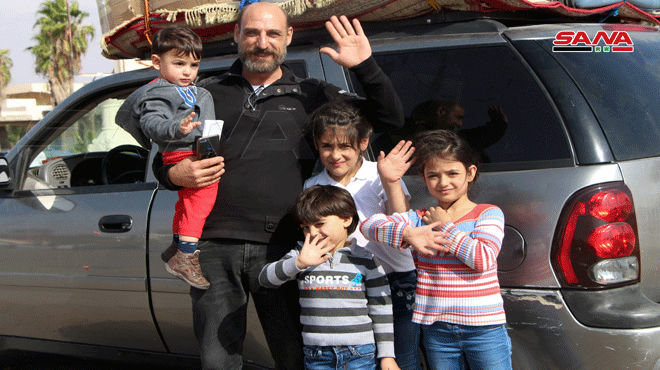 Le correspondant de SANA a affirmé le retour de plusieurs familles déplacées venant des camps des refugiés en Jordanie à leurs villages libérés du terrorisme, via le poste frontalier de Nassib.
