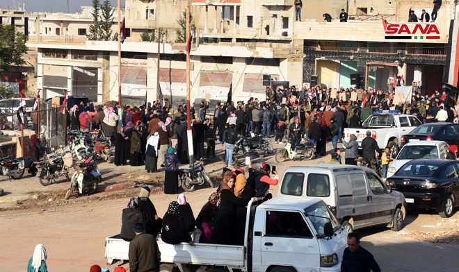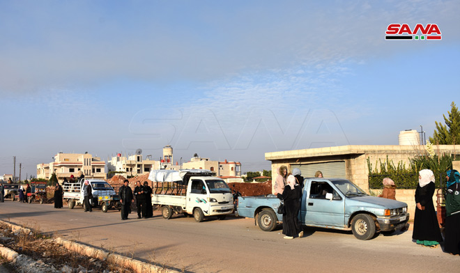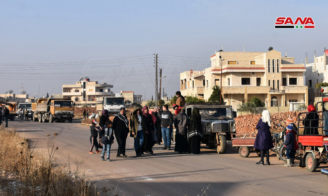 Hama-SANA/ Des centaines de familles déplacées ont commencé à regagner leurs domiciles dans la localité de Halfaya, dans la banlieue nord de Hama, après la réinstauration par l’armée arabe syrienne de la sécurité et de la stabilité dans toute la banlieue nord du gouvernorat.