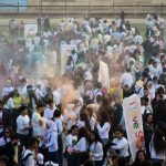 Le marathon, qui est organisé par le gouvernorat de Damas en coopération avec l’Union générale des sports pour la 2e année consécutive, a été lancé de la place des Omeyyades à Damas vers la cités des sports d’al-Jala’, où les participants se sont rassemblées et ont jeté différentes couleurs dans l’air pour exprimer leur joie et leur affection.