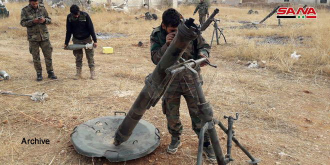 Alep – SANA/ Des unités de l’armée arabe syrienne ont porté des frappes aux positions des terroristes dans la banlieue sud-ouest d’Alep, en riposte à leurs attaques aux roquettes contre les quartiers de la ville d’Alep et les zones sûres dans la banlieue sud-ouest.