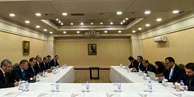 Nurusltan – SANA / La délégation de la République arabe syrienne, présidée par Dr Bachar al-Jaafari, a tenu une rencontre avec la délégation iranienne, présidée par le haut assistant du ministre des affaires étrangères pour les affaires politiques spéciales, Ali Asghar Khaji, dans le cadre du 14ème round des pourparlers d’Astana sur la Syrie.