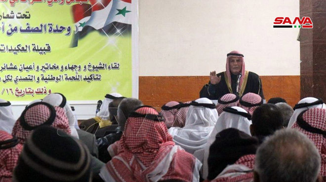 Dans un communiqué, les participants à la Rencontre ont affirmé que les tribus se tiennent aux côtés de l’armée arabe syrienne face au terrorisme, aux groupes séparateurs et à toute forme d’agression.