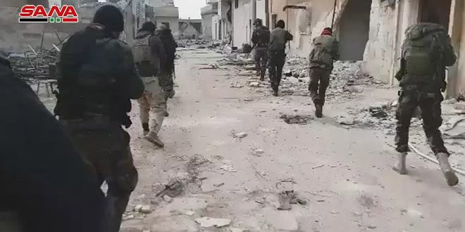 Idleb-SANA / Les unités de l’armée arabe syrienne sont entrées dans la majorité des quartiers de la ville de Maarret Nou’man stratégique dans la banlieue sud d’Idleb après de violents accrochages avec les réseaux terroristes qui avaient subi de lourdes pertes.