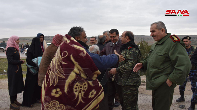 L’armée sécurise la sortie d’un certain nombre d’habitants de la ville de Maarret Nu’man après sa purification du terrorisme