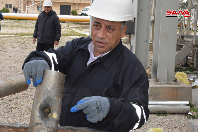 Homs -SANA / Les chantiers de la société syrienne de gaz ont commencé à réparer les dégâts résultant de l’attaque terroriste qui a visé à l’aube un certain nombre d’ installations de la société précitée dans la banlieue est de Homs, dont la raffinerie de Homs.
