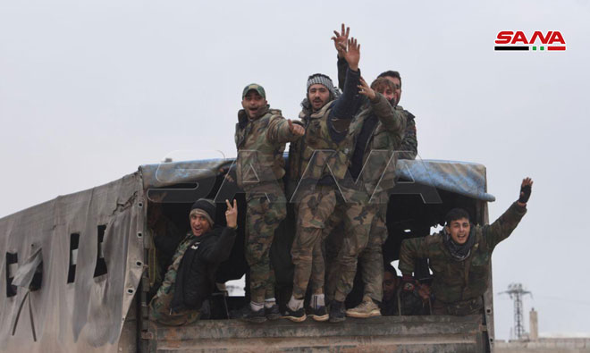 Idleb-SANA / Des unités de l’armée arabe syrienne opérant dans la banlieue d’Idleb ont poursuivi la progression en direction de la ville de Saraqeb dans la banlieue est d’Idleb et libéré la localité stratégique de Tell Touqane et les deux villages d’Islamine et Rayane, contrôlant l’autoroute d’Alep-Saraqeb.