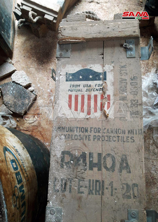 Idleb-SANA/ Des unités de l’armée arabe syrienne ont découvert des armes et des munitions de fabrication américaine et des médicaments de fabrication saoudienne et koweïtienne dans les QG et les dépôts des réseaux terroristes dans les deux localités de Mardikh de Kafr Amim dans la banlieue sud-est d’Idleb, après leur libération du terrorisme.