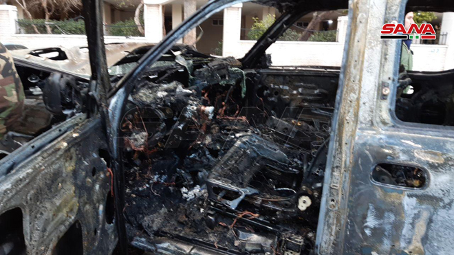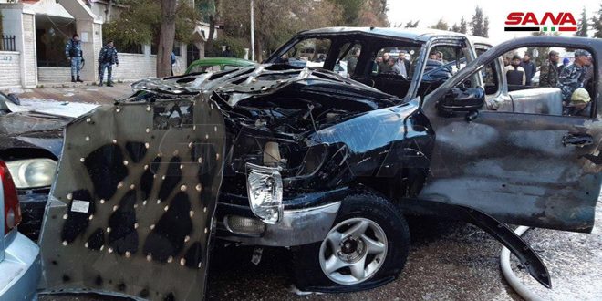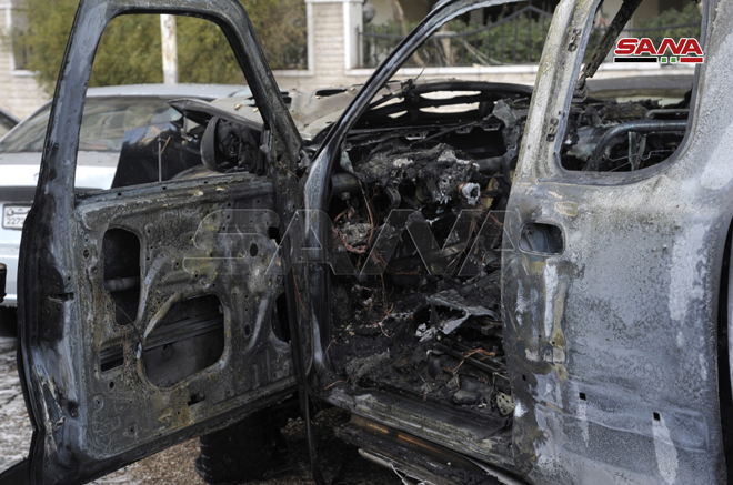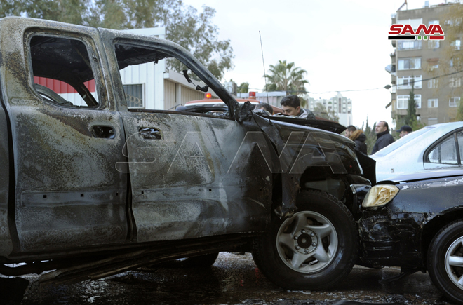 Damas-SANA / Une personne a été blessée ce soir dans l’explosion d’une charge plantée par les terroristes dans un véhicule dans la zone de Mazzeh à Damas.