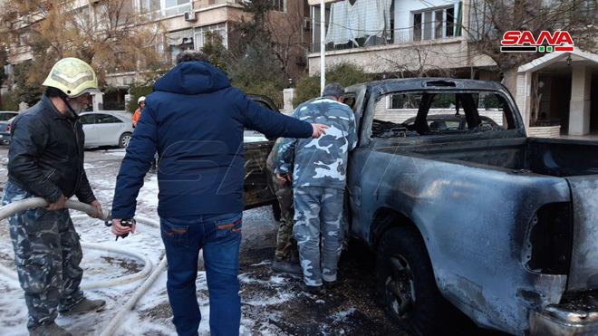 Dans une déclaration à SANA, une source du Commandement de la police à Damas a fait allusion à l’explosion d’une charge, plantée par des terroristes dans un véhicule Pick-Up qui avait été parqué derrière le jardin al-Jalaa dans la zone de Mazzeh.