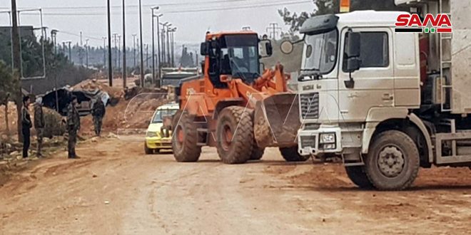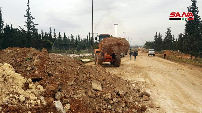 Les chantiers commencent à éliminer les barricades sur l’autoroute d’Alep-Damas à proximité de l’accès ouest d’Alep
