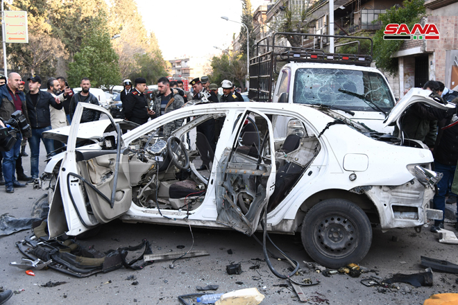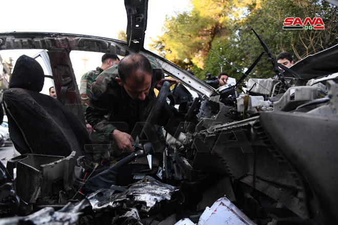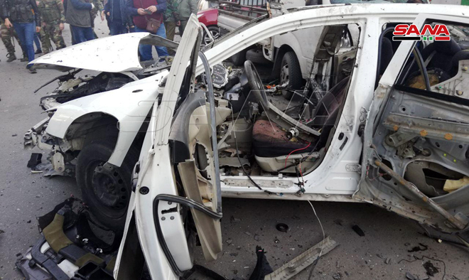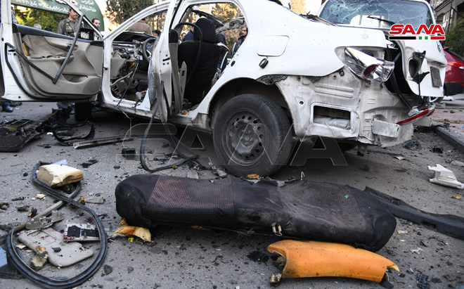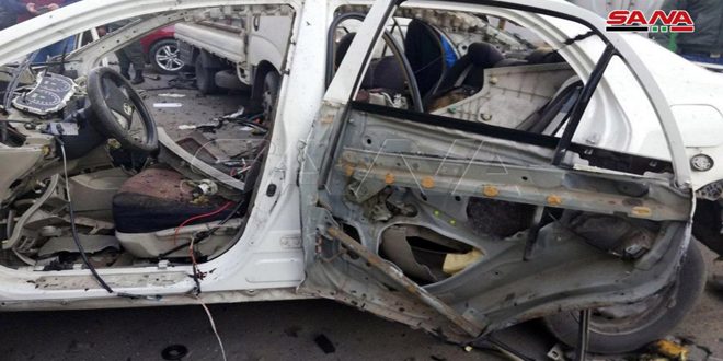 Damas-SANA / Un civil est tombé en martyr alors qu’un autre a été grièvement blessé dans l’explosion d’une charge plantée par des terroristes dans une voiture à proximité du stade de Tichrine dans la ville de Damas.