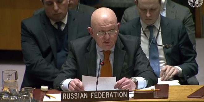 New York-SANA/ L’ambassadeur permanent de la Russie à l’ONU, Vassily Nebenzia, a réaffirmé que les terroristes à Idleb poursuivent leurs attaques contre les civils, les zones avoisinantes, les positions de l’armée syrienne et l’aéroport de Hmeimim, soulignant que l’armée arabe syrienne a le droit d’y riposter.