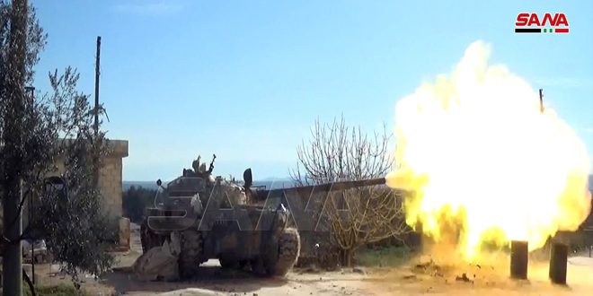 Idleb-SANA/ Des unités de l’armée arabe syrienne ont poursuivi leurs opérations militaires et leur progression dans la banlieue sud d’Idleb après avoir repoussé les attaques des terroristes soutenus par les forces du régime turc.