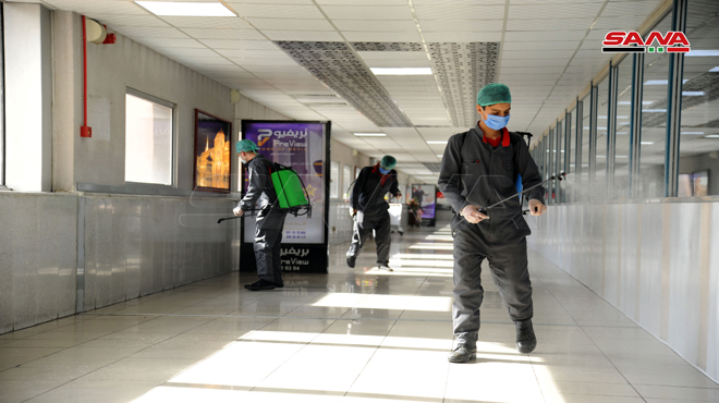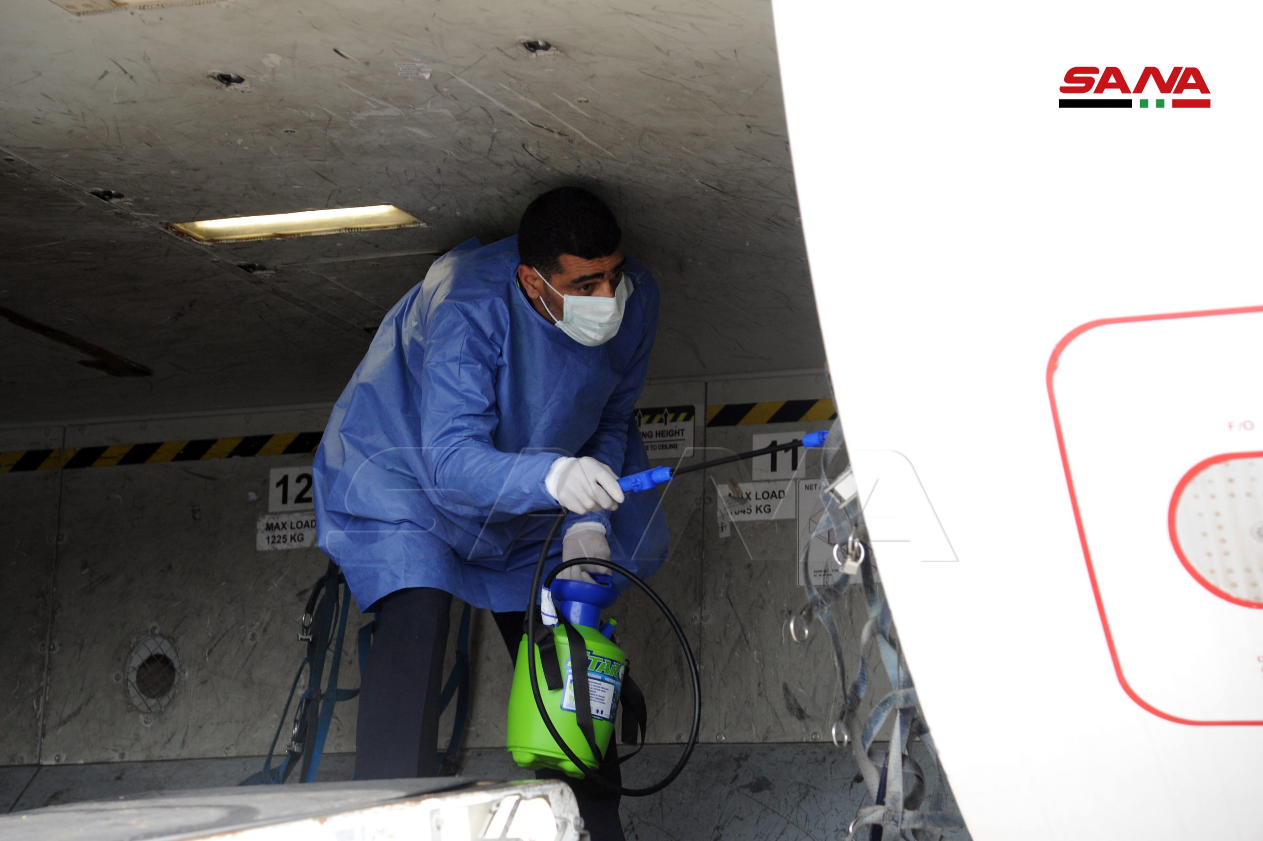 Banlieue de Damas-SANA / Des mesures préventives ont été prises par le ministère du Transport en coordination avec le ministère de la Santé, dont la désinfection des avions qui arrivent et qui déparent à l’aéroport international de Damas et des accès menant à l’aéroport, en plus de l’usage de détecteurs thermiques pour scanner les passagers.